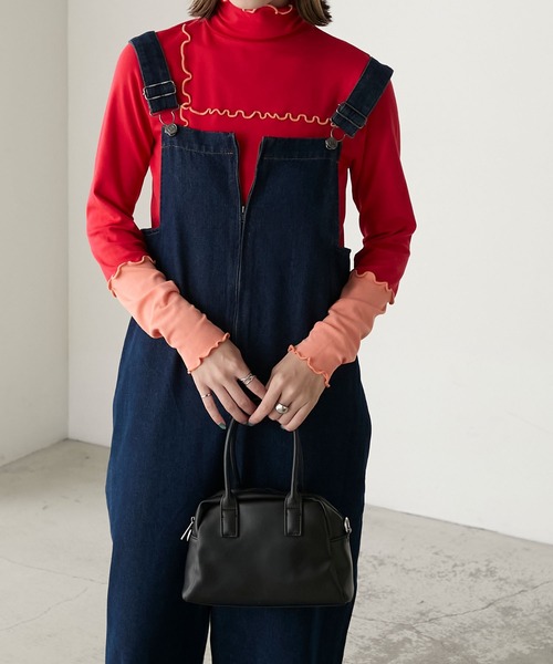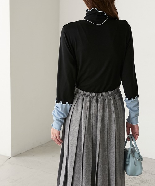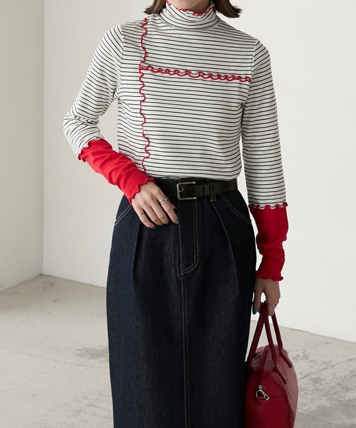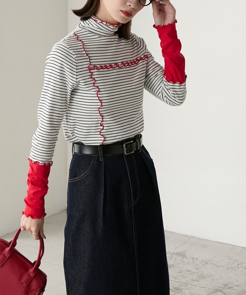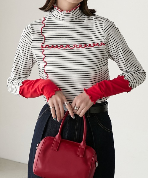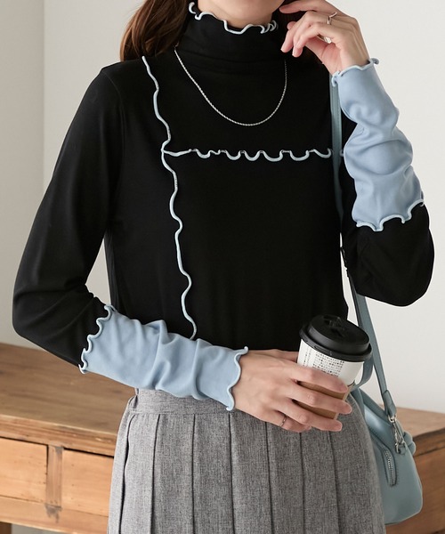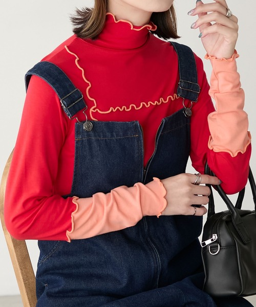 木耳邊撞色衣袖上衣