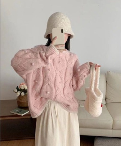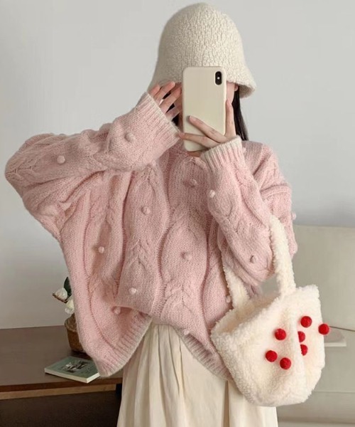 毛毛球麻花針織冷衫