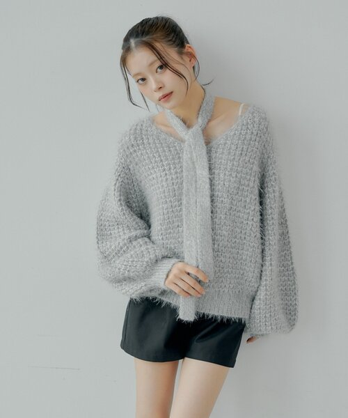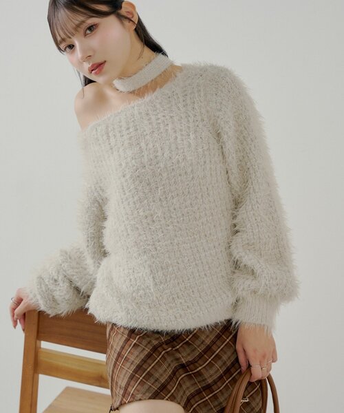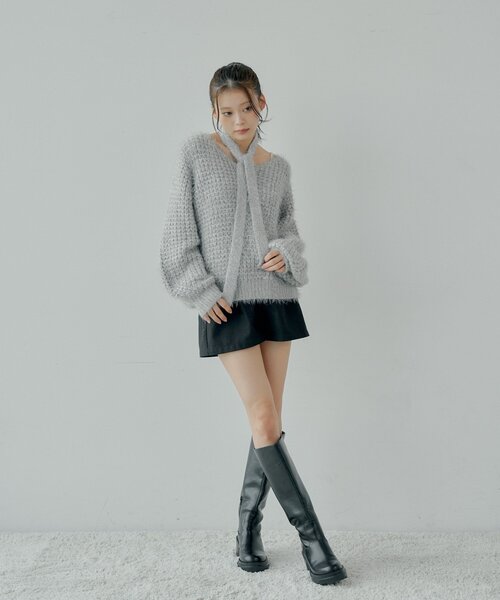 粗針織頸帶冷衫